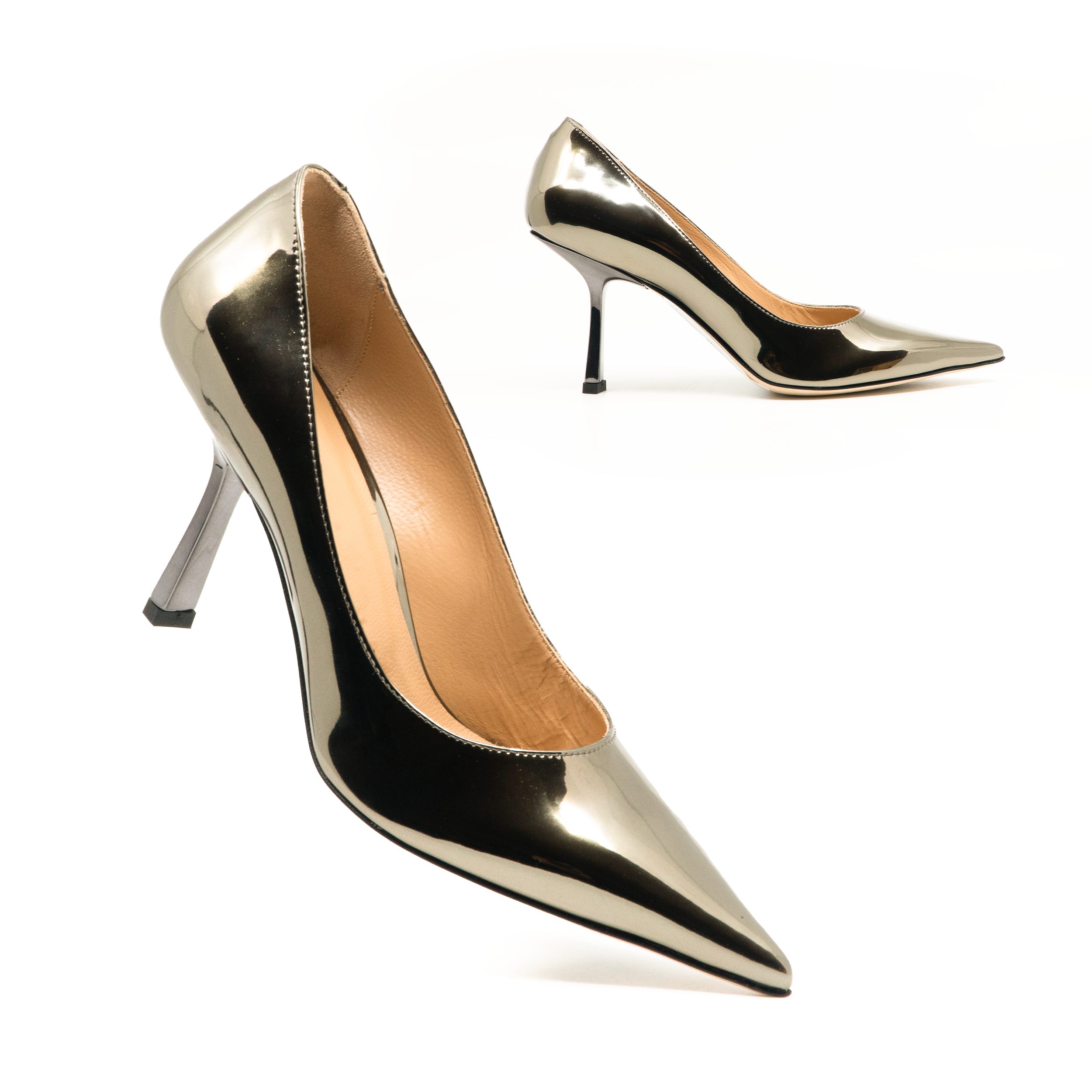 - Tacco cromato come tomaia, altezza 80mm.