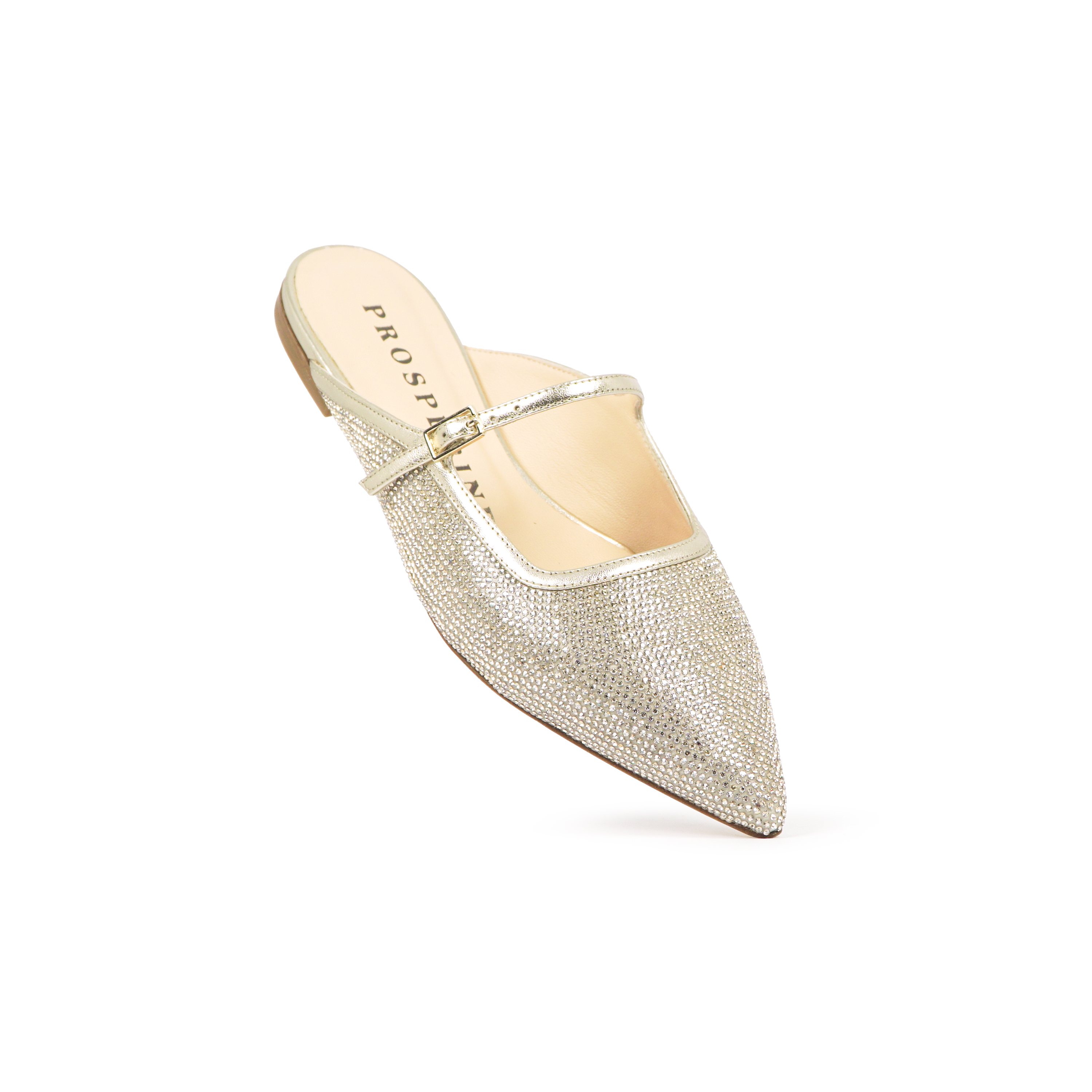 • Tomaia rivestita in crystal con laccetto e chiusura.