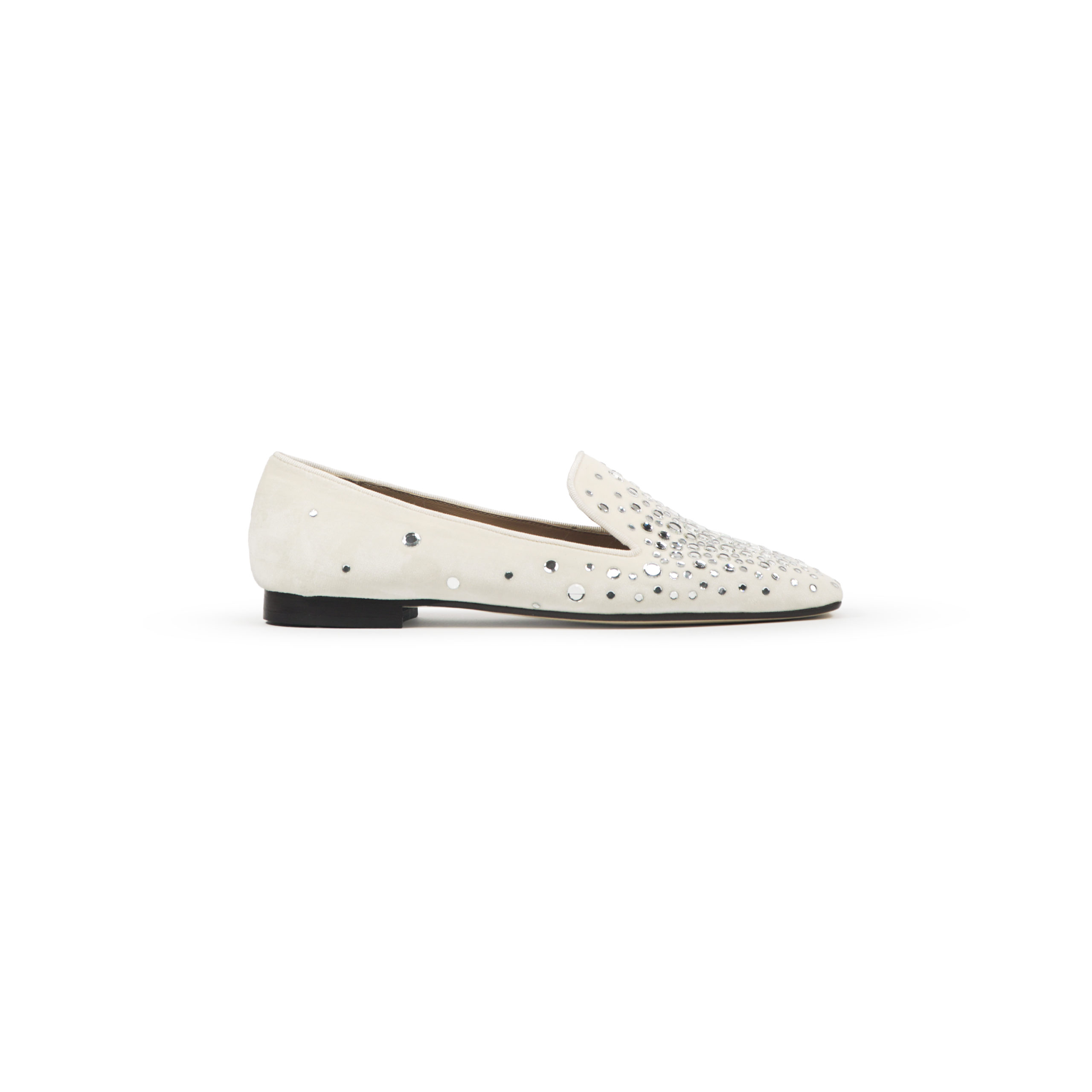 Slipper da donna con strass, tacco 15mm. Suola in cuoio e fodera in pelle. Lavorazione "a sacchetto".